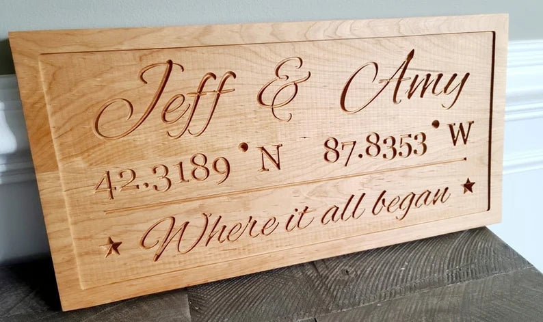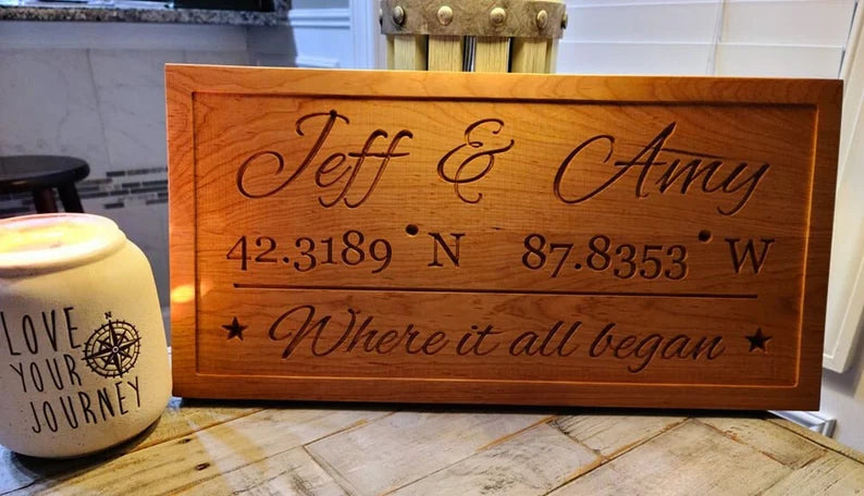 Crafted from hardwood, this Customized Sweetheart Coordinates Sign is the perfect gift for Valentine's Day. Personalize it with the coordinates of a special location, symbolizing your love and commitment to your significant other. Show your partner how much they mean to you with this unique and heartfelt present.